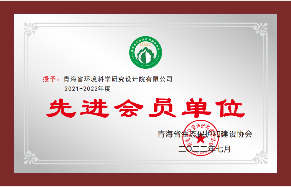 青海省生態(tài)保護(hù)和建設(shè)協(xié)會(huì)《先進(jìn)會(huì)員單位》,青海省生態(tài)保護(hù)和建設(shè)協(xié)會(huì)頒發(fā),2022年7月