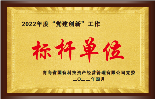 2022年度“黨建創(chuàng)新”工作標(biāo)桿單位,青海省國(guó)有科技資產(chǎn)經(jīng)營(yíng)管理有限公司黨委頒發(fā),2022年4月