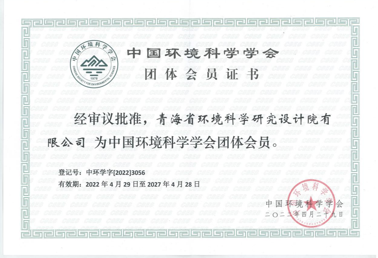 中國(guó)環(huán)境科學(xué)學(xué)會(huì)團(tuán)體會(huì)員證書(shū),中國(guó)環(huán)境科學(xué)學(xué)會(huì)頒發(fā),2022年4月29日