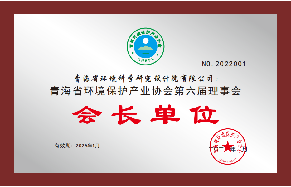 青海省生態(tài)保護(hù)和建設(shè)協(xié)會(huì)副會(huì)長(zhǎng)單位,青海省生態(tài)保護(hù)和建設(shè)協(xié)會(huì)頒發(fā),2021年5月